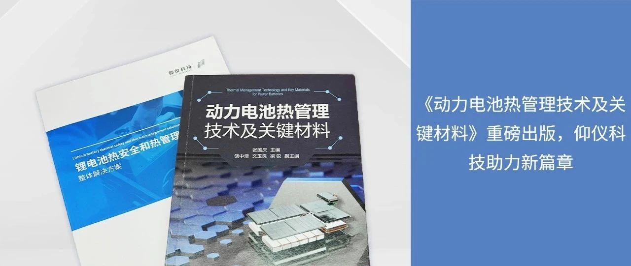 仰儀科技參編的《動(dòng)力電池?zé)峁芾砑夹g(shù)及關(guān)鍵材料》書籍由化學(xué)工業(yè)出版社正式出版,仰儀科技資深應(yīng)用工程師邱文澤博士擔(dān)任書籍委員之一參與編寫工作。