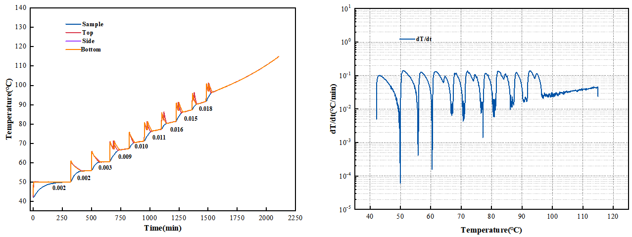規(guī)避鋰電池?zé)岚踩L(fēng)險(xiǎn)的前提是獲取電池的熱特征參數(shù),從而設(shè)計(jì)相應(yīng)的防護(hù)措施與預(yù)警機(jī)制。目前,行業(yè)內(nèi)主要利用電池絕熱量熱儀(ARC)測試鋰電池的關(guān)鍵熱參數(shù),該儀器能夠在絕熱狀態(tài)下測定電池的自發(fā)熱特性,從而獲取電池絕熱熱失控特征參數(shù)或絕熱溫升特性數(shù)據(jù)(GB/T 36276-2023)。