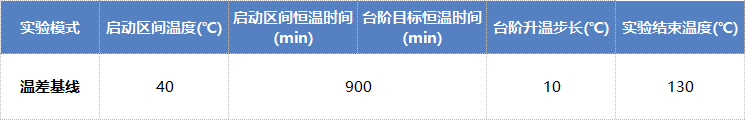 Step4:在操作軟件上切換至“實驗參數(shù)”界面,選擇“溫差基線”模式,如表1所示設(shè)置實驗參數(shù);