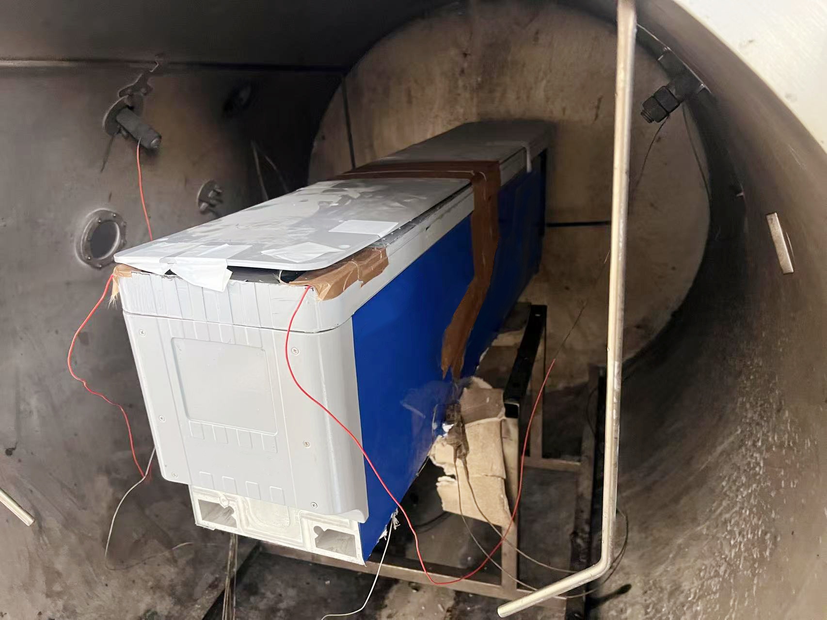 Step1:打開大型電池絕熱量熱儀爐蓋,將電池樣品固定于量熱儀腔體內(nèi),并利用耐高溫膠帶將熱電偶貼合于模組大面中心點;