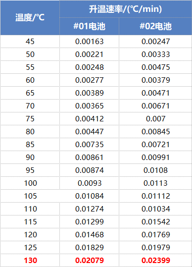 從圖3和圖4可以看出,兩個模組的臺階溫升速率總體隨著模組溫度的升高而升高,其規(guī)律與電池單體規(guī)律一致,表明BAC-1000A大型電池絕熱量熱儀可精準測定小型模組的絕熱溫升行為。